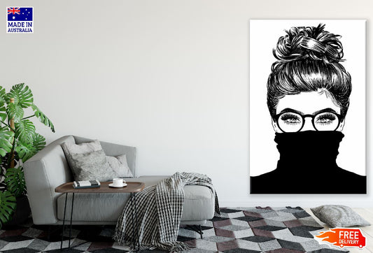 Face Covered Girl with Bun Hair B&W Illustration Print 100% Australian Made
