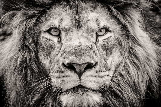 Lion face Closeup B&W Photograph Print 100% Australian Made