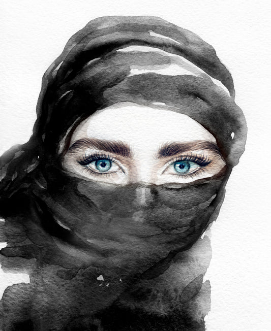 B&W Woman Portrait Watercolor Painting Print 100% Australian Made