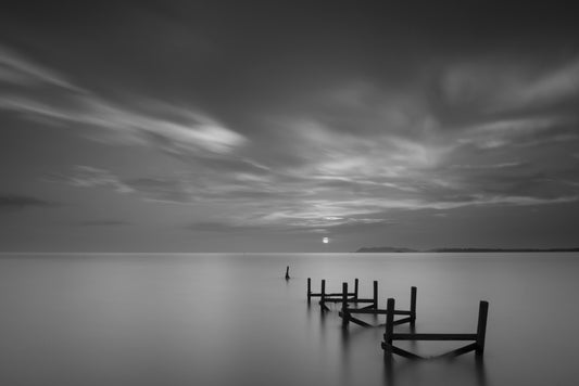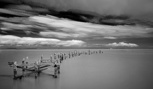 Pier Ruins in Sea B&W Scenery Photograph Print 100% Australian Made