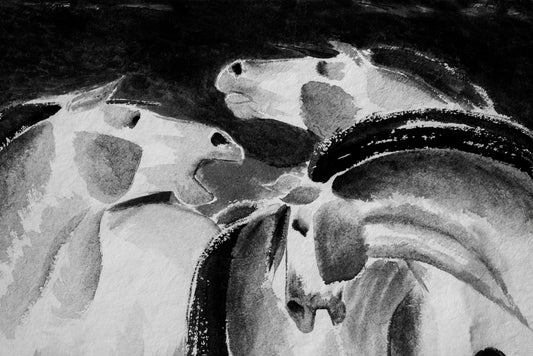 Horses Portrait B&W Painting Print 100% Australian Made