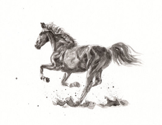 Running Horse B&W Painting Print 100% Australian Made