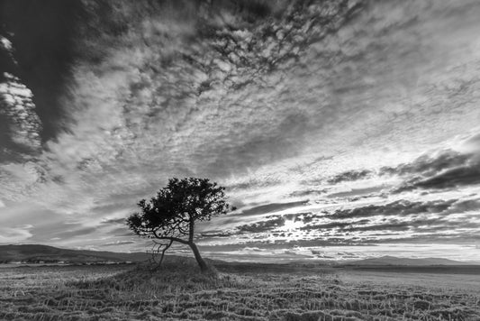 Alone Tree Under Cloudy Sky B&W Photograph Print 100% Australian Made