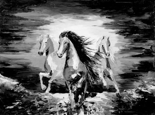 Horses Running B&W Watercolour Painting Print 100% Australian Made