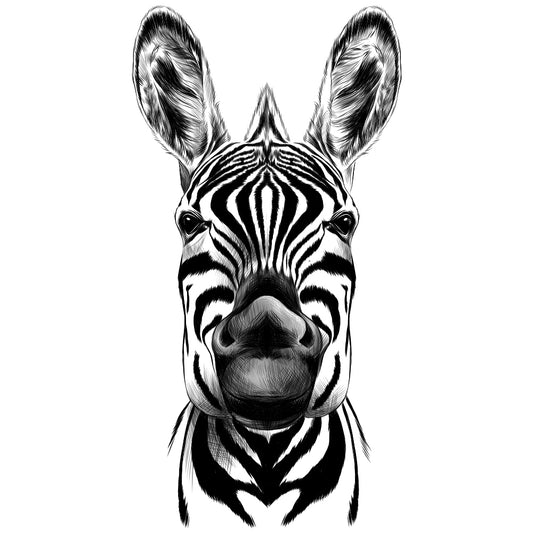 Zebra Face Portrait B&W Painting Print 100% Australian Made