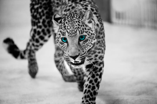 Leopard Walking Blue Eyes B&W Photograph Print 100% Australian Made