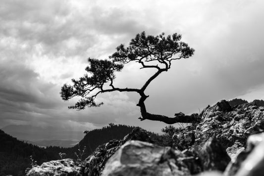 Tree on a Hill Slope B&W Photograph Print 100% Australian Made