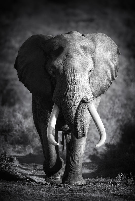B&W Elephant Walking Photograph Print 100% Australian Made