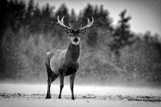 Reindeer B&W Snow Photograph Print 100% Australian Made