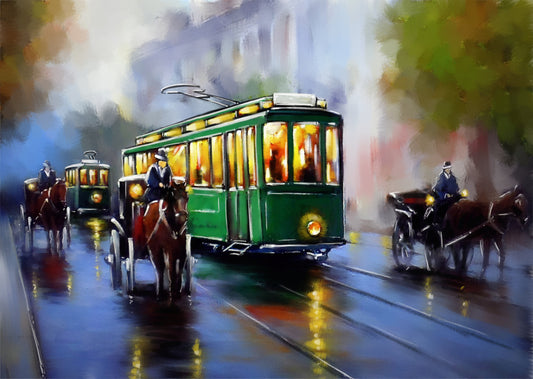 Wallpaper Murals Peel and Stick Removable Tram Trains in City Painting High Quality