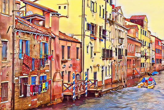 Buildings with Boat on Canal Watercolour Painting Print 100% Australian Made