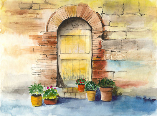 Flower Vases & Vintage Arch Door Painting Print 100% Australian Made