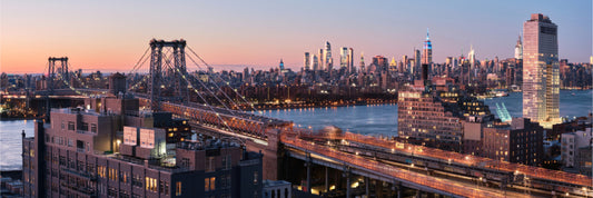 Panoramic Canvas Williamsburg Bridge in Brooklyn with Midtown Manhattan Skyline High Quality 100% Australian made wall Canvas Print ready to hang