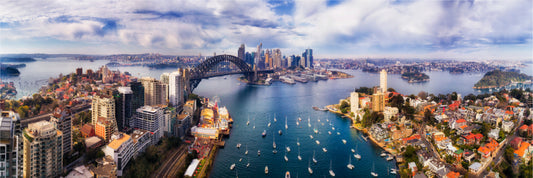 Panoramic Canvas Sydney City Skyline View High Quality 100% Australian made wall Canvas Print ready to hang