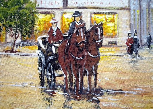 Vintage Horse Cart In City Street Painting Print 100% Australian Made