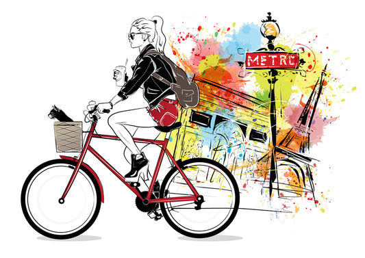 Lady Riding a Bicycle With a Coffe Cup in Hand Painting Print 100% Australian Made