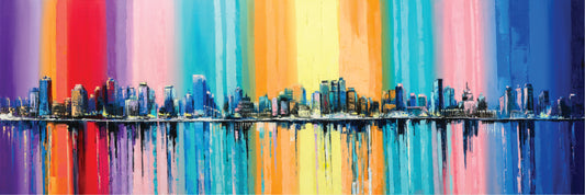 Panoramic Canvas Colourful Abstract City Landscape Painting High Quality 100% Australian made wall Canvas Print ready to hang