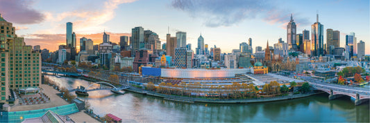 Panoramic Canvas Melbourn CityScape High Quality 100% Australian made wall Canvas Print ready to hang