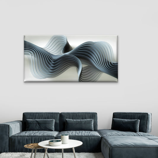 3D Silver Wave Abstract Design Wall Art Canvas Office Home Room Framed 120x60cm