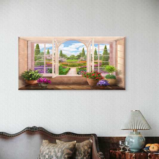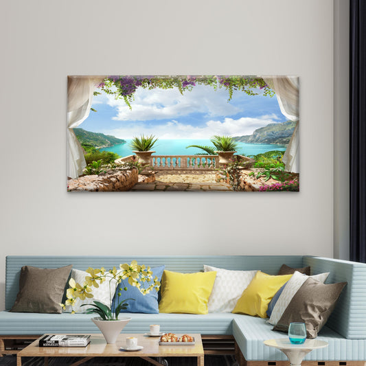 Greece Open Window Garden Wall Art Canvas Office Home Room Framed 120x60cm