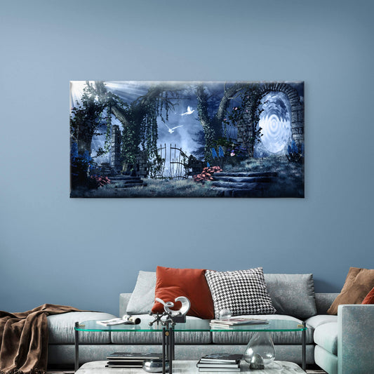 Mystic Fantasy Garden Gate Wall Art Canvas Office Home Room Framed 120x60cm