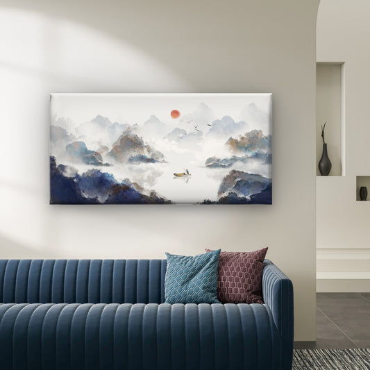 Chinese Ink Wash Mountain Boat Wall Art Canvas Office Home Room Framed 120x60cm