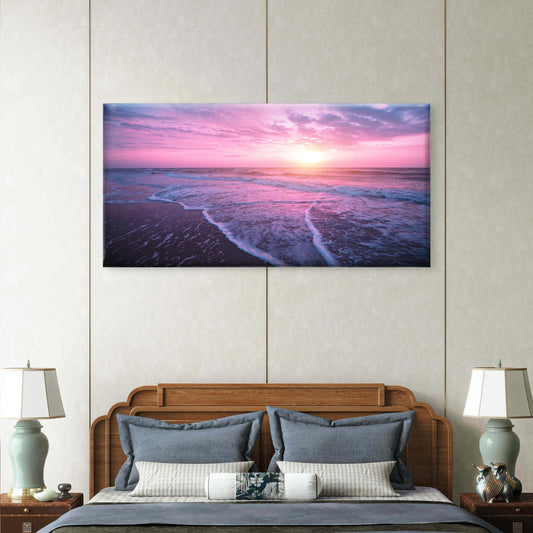 Malibu Beach Purple Sunset USA Wall Art Canvas Office Home Room Framed 120x60cm