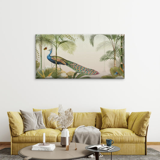 Vintage Peacock Tropical Bird Wall Art Canvas Office Home Room Framed 120x60cm