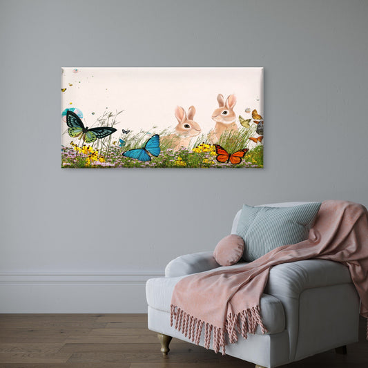 Cute Garden Bunnies Wildlife Wall Art Canvas Office Home Room Framed 120x60cm