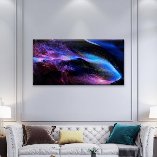 Blue Purple Fluid Abstract Swirl Wall Art Canvas Office Home Room Framed 120x60cm
