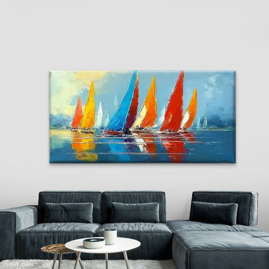 Vibrant Sailboats on The Ocean Wall Art Canvas Office Home Room Framed 120x60cm