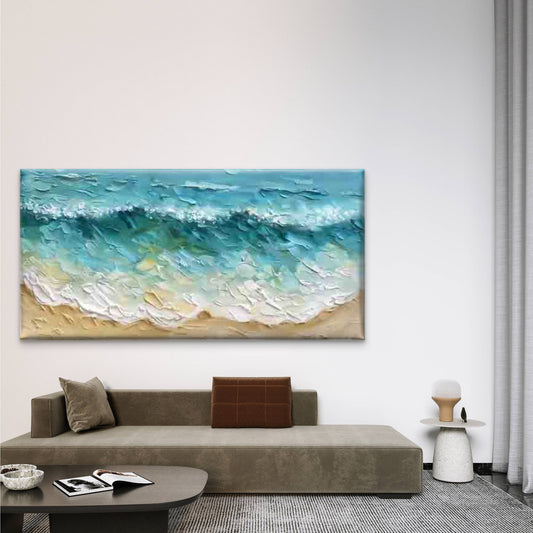 Ocean Waves And Sandy Beach Wall Art Canvas Office Home Room Framed 120x60cm