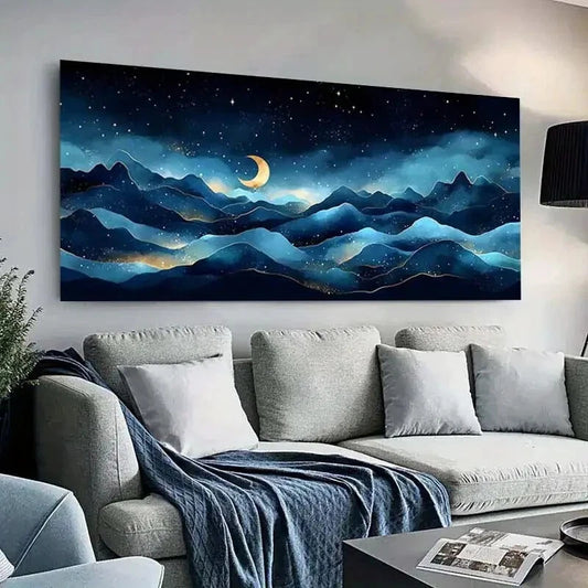 Night Sky Gold Starry Moon wall canvas office home room framed 120x60cm