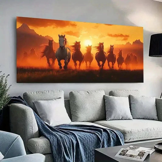 Sunset Galloping Horses wall canvas office home room framed 120x60cm