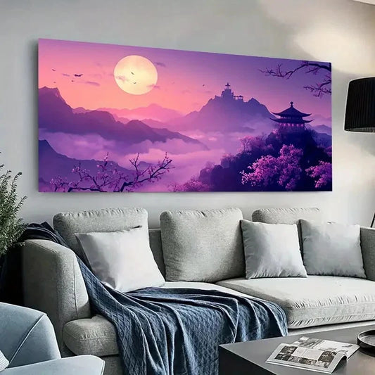 Pink Sunset Pagoda Forest wall canvas office home room framed 120x60cm