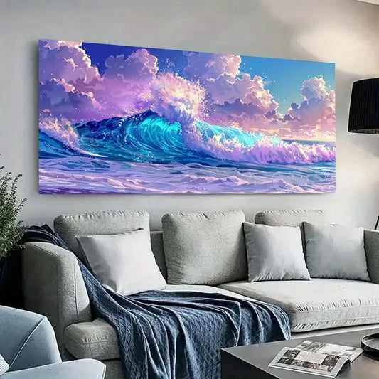 Vibrant Cloudy Ocean Waves wall canvas office home room framed 120x60cm