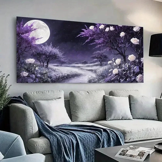 Moonlit Forest Roses Path wall canvas office home room framed 120x60cm