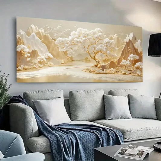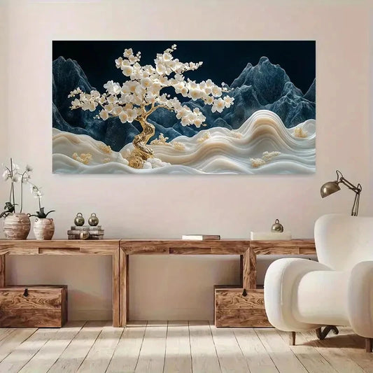 Snowy Peaks White Blossoms wall canvas office home room framed 120x60cm