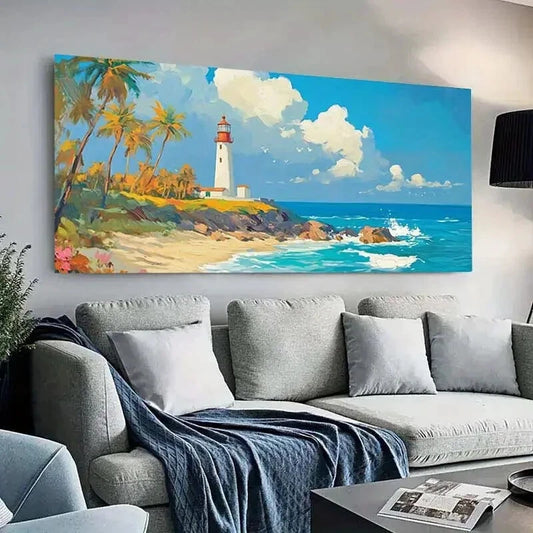 Seaside Lighthouse Ocean wall canvas office home room framed 120x60cm