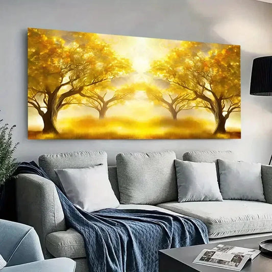 Golden Tree Autumn Forest wall canvas office home room framed 120x60cm
