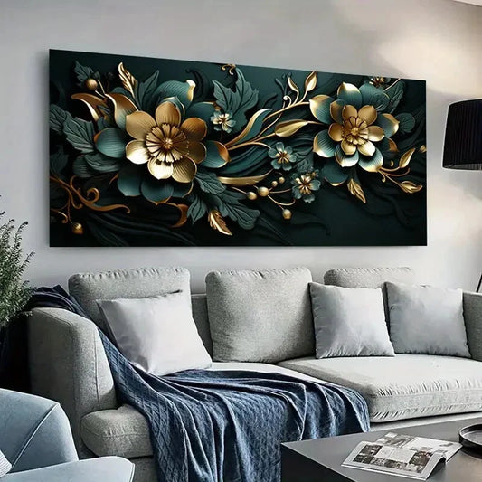 Modern Green with Flowers wall canvas office home room framed 120x60cm