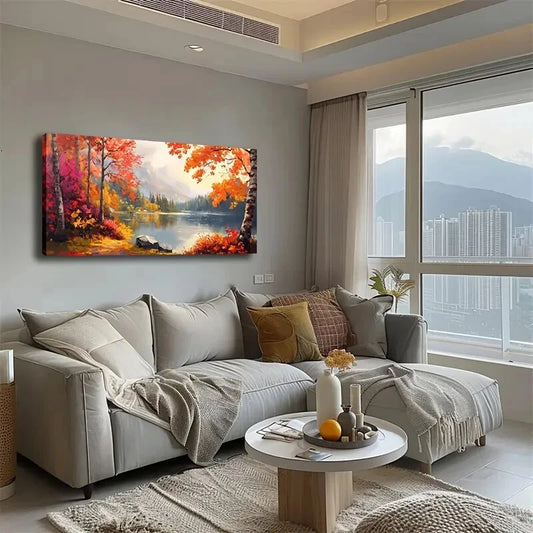 Autumn Lake & Birch Trees wall canvas office home room framed 120x60cm