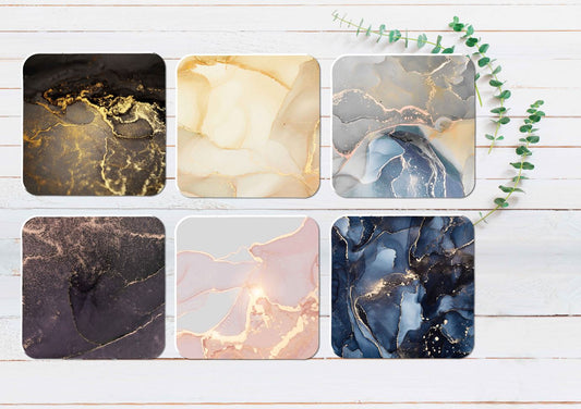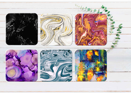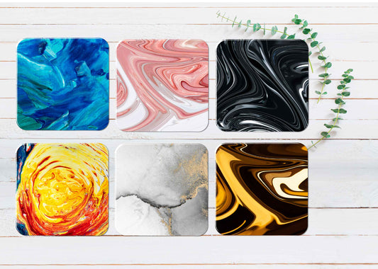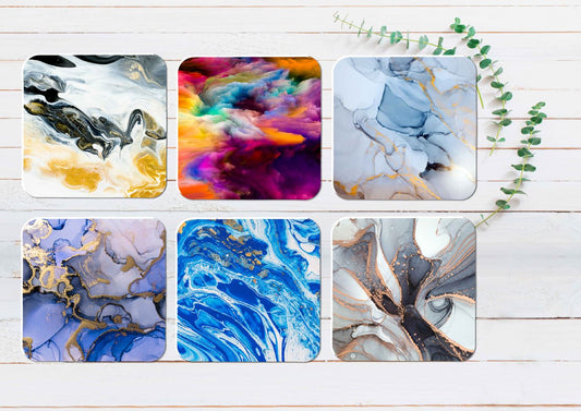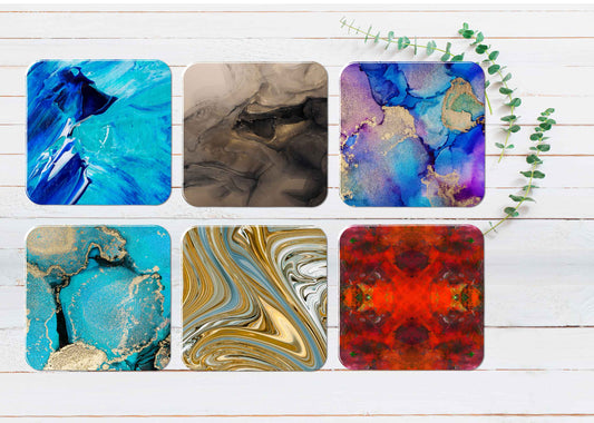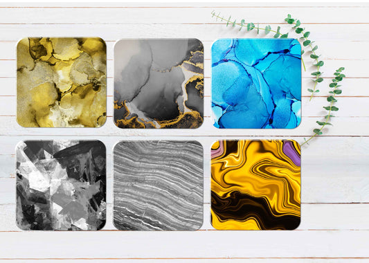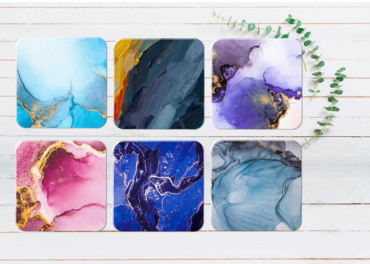 Black Gold & Blue Splash Abstarct Coasters Wood & Rubber - Set of 6 Coasters