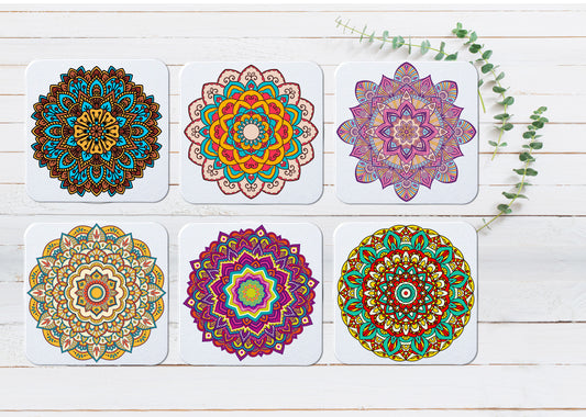 Beautiful Mandala Drink Coasters Wood & Rubber - Set of 6 Coasters