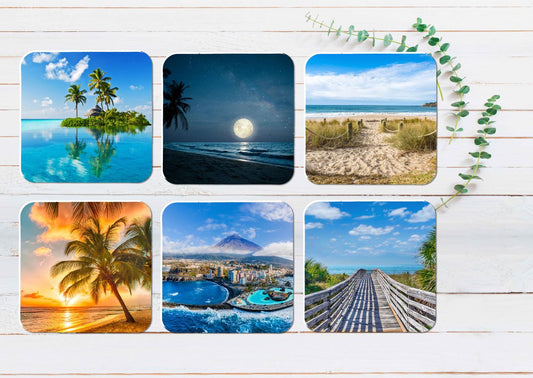 Beach Palm Trees Wooden Pathway Coasters Wood & Rubber - Set of 6 Coasters
