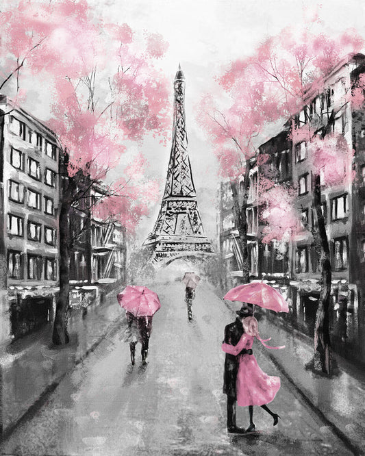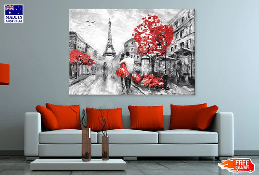 Eiffel Tower Street Couples Walking Floral Painting 60x90cm Print 100% Australian Made