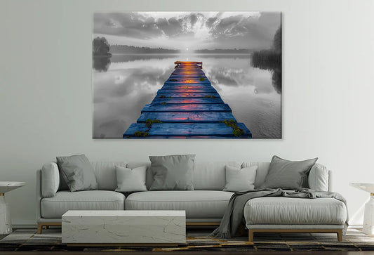Wooden pier overlooking the lake at sunset 90x60cm Print 100% Australian Made