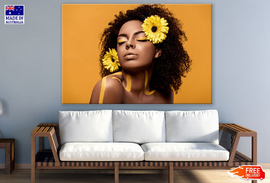 African Woman with Gerbera in Hair Photograph Print 100% Australian Made