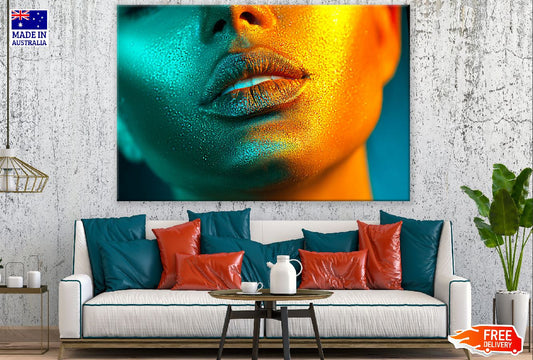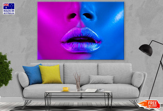 Silver Lips Woman in Blue & Purple Lights Photograph Print 100% Australian Made