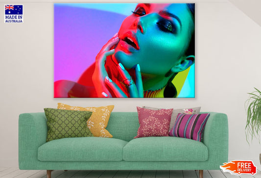 Fashion Woman in Colorful Lights Photograph Print 100% Australian Made
